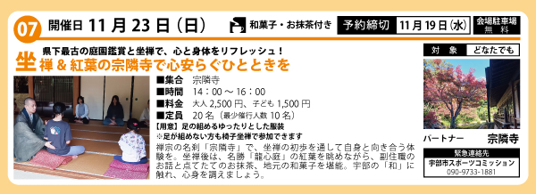 07)坐禅&紅葉の宗隣寺で心安らぐひとときを【終了しました】 |